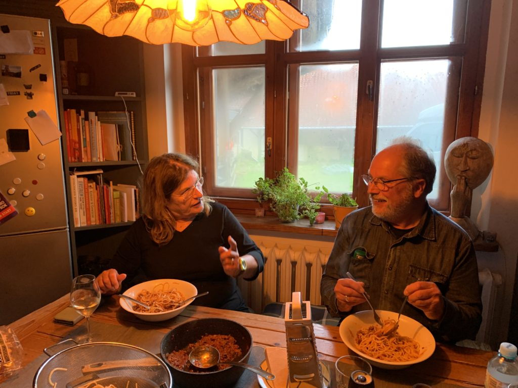 Und dann tauchten Martin und Yasmin auf. Martin war dereinst Begründer dieses Anwesens und seit langer Zeit nicht mehr hier. Die stellten ihr Womo in den Innenhof und wir verbrachten 2 sehr nette Tage. Martin konnte mir noch so einiges an Unklarheiten erhellen und beeindruckte mich durch profunde polnische Sprachgewalt. Yasmin versorgte uns mit kleinen Häppchen niederländischer Provenienz. Gleich nach dem Frühstück werden sie zur Fähre nach Schweden aufbrechen.