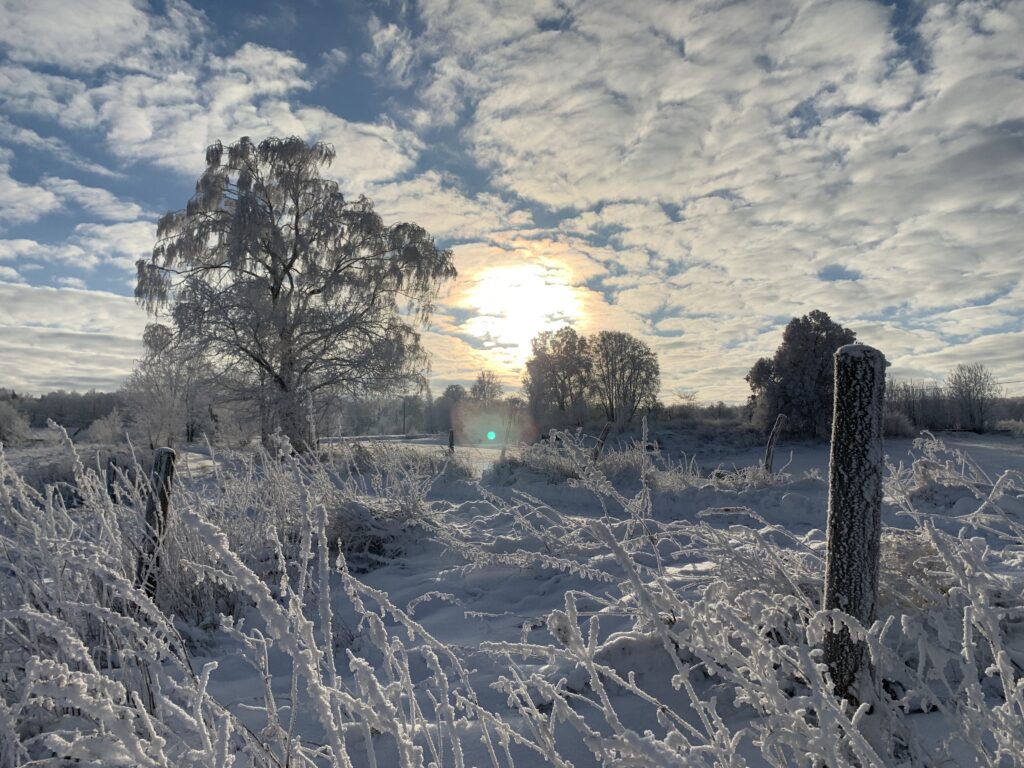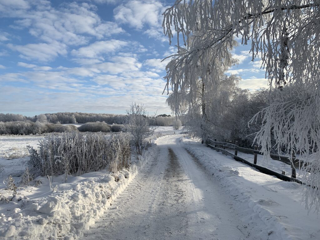 Nach meiner Rückkehr empfing uns ein herrliches Wintergebahren. Schon die Anreise ab Posen war schneegeflockt und mit erheblicher Aufmerksamkeit genötigt. Das Thermometer zeigte in Widryny – 8 Grad, so dass die weisse Pracht schlummernd liegenblieb und dann und wann einen frischen Überzug bekam.