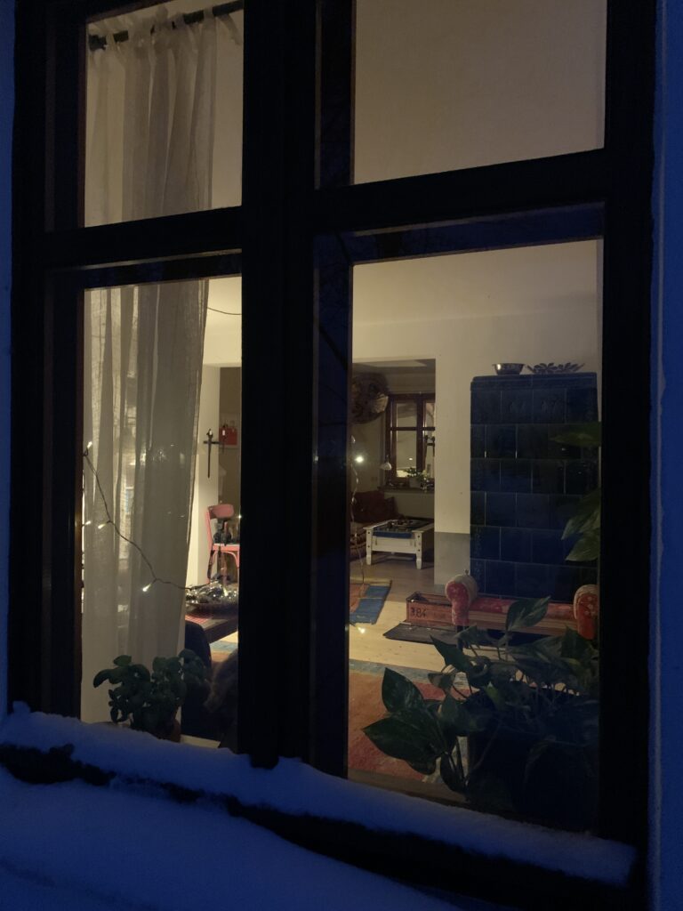 Früh wird es dunkel, spätestens 16.00 ist zappenduster. Habe dann ein paar Grenzerfahrungen machen müssen, bin also mit Stirnlampe des abends in einem 5-Meter-Lichtkegel zur üblichen Marlon-Runde aufgebrochen, und in absoluter Dunkelheit, kein Fremdlicht, kein Mond, keine Sterne, also wirklich nichts was die Netzhaut jenseits des Kegels als Input verarbeiten konnte, und habe mich völlig verlaufen, keine Orientierungsmöglichkeiten. Panik kam auf bei -10 Grad, kognitive Dissonanz in Wahrnehmung und Vorstellung des Locus. Musste wirklich mithilfe von Google Maps meinen Standort bestimmen und fand mich ferab des Vermuteten. Spooky. Die Alternative, sich der Unbestimmheit bis zum Morgengrauen auszusetzen kam der arktischen Temperaturen wegen nicht infrage. Dieses Spektakel habe ich zweimal wiederholt mit ähnlichem Ausgang ……
