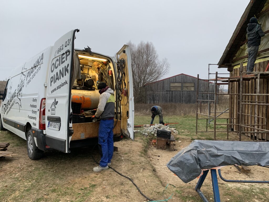 Mateusz und Rapahal hatten in meiner Abwesenheit das Dach fertiggestellt und für die Ausschäumung im Inneren alles vorbereitet. Marek ( der Andere ) hatte die Heizung repariert, das Schneckengetriebe war im Arsch. Nun kann die kolumbianische Kohle wieder KiloJoule anfeuern.