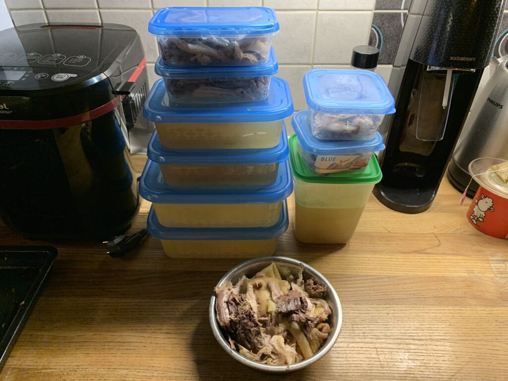 Aber stimmt die Rechnung ? Ja !!! und NEIN !!!! was habe ich einen Respekt vor diesen beiden Exemplaren, die ich er- und verarbeitet habe. Sie hatten ein gutes Leben auf dem Hof, sind nicht als männliche Küken geschreddert worden.  Wir hatten Spass und Respekt. Besser geht nicht.